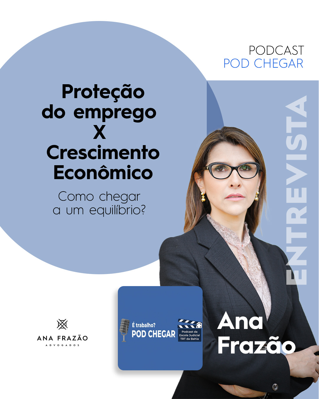 Nossa sócia Ana Frazão participou do podcast Pod Chegar, realizado pela Escola Judicial TRT-5 Bahia, falando sobre a necessidade de buscar o equilíbrio entre proteção do emprego e crescimento econômico.