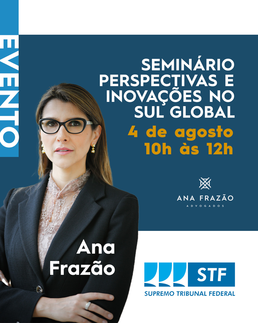 No dia 4 de agosto nossa sócia, Ana Frazão, participa do seminário “Perspectivas e Inovações no Sul Global”, promovido pelo Supremo Tribunal Federal (STF).