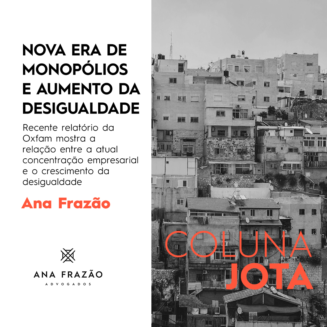 Na coluna do JOTA desta semana, nossa sócia Ana Frazão publicou artigo intitulado “Nova era de monopólios e aumento da desigualdade”.