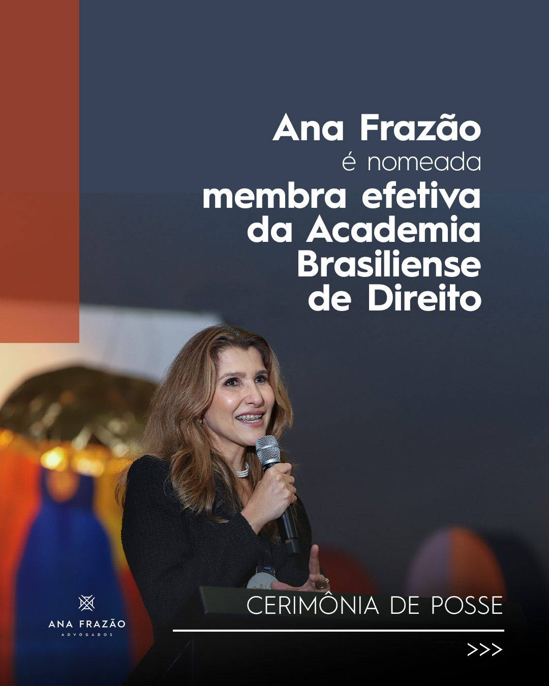 Com muita alegria compartilhamos que no último dia 11 de junho, nossa sócia Ana Frazão tomou posse como membra efetiva da Academia Brasiliense de Direito (ABDIR), em cerimônia solene presidida pelo professor Manoel Jorge e Silva Neto.