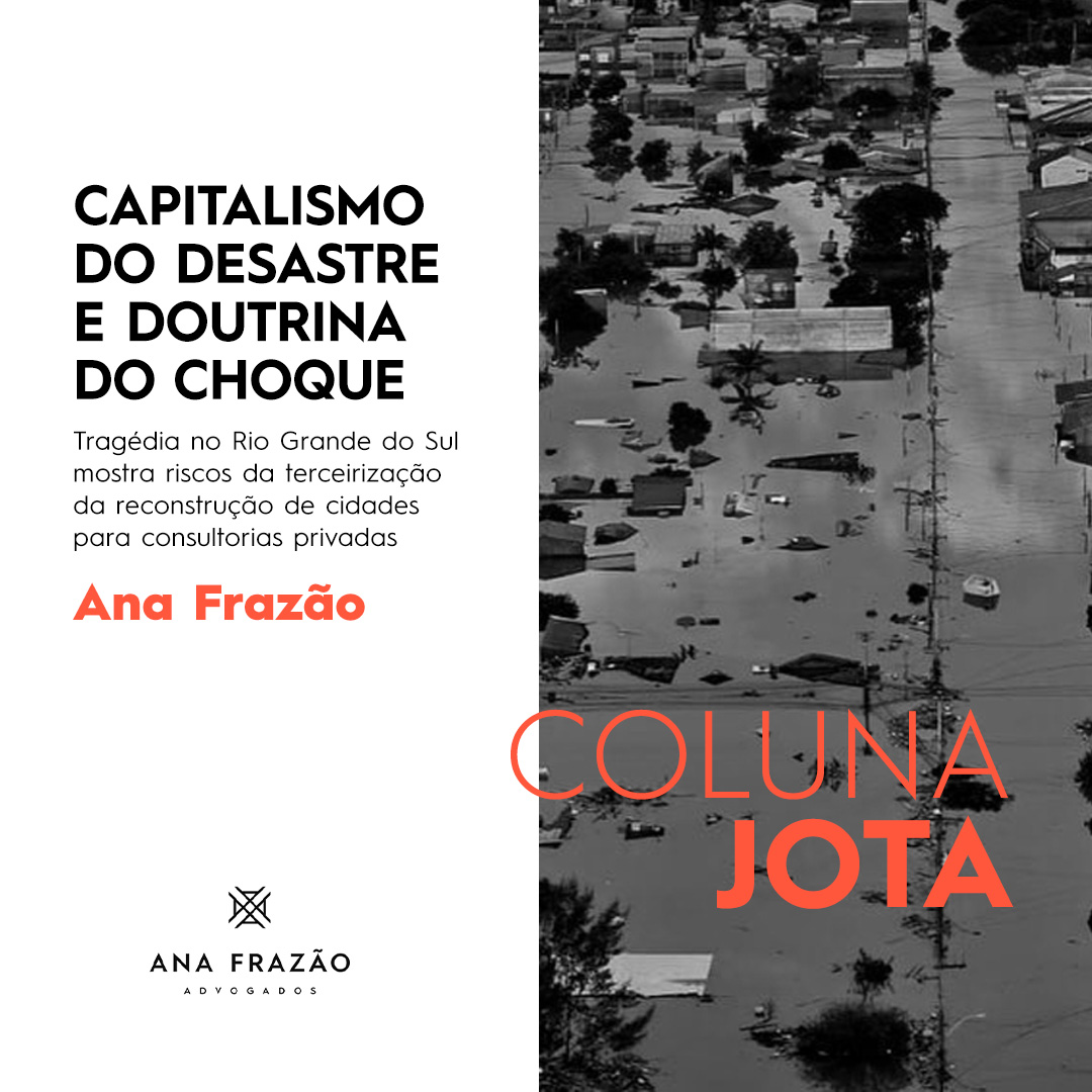 “Capitalismo do desastre e doutrina do choque” é o título do artigo da nossa sócia Ana Frazão, publicado hoje (14/8) em sua coluna no JOTA.