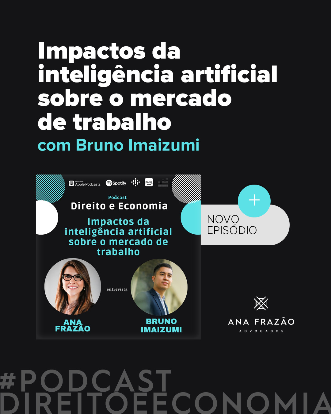 No episódio de hoje do podcast Direito e Economia, nossa sócia Ana Frazão conversa com Bruno Imaizumi, Economista e Consultor da 4Intelligence, sobre os impactos da inteligência artificial generativa sobre o mercado de trabalho.