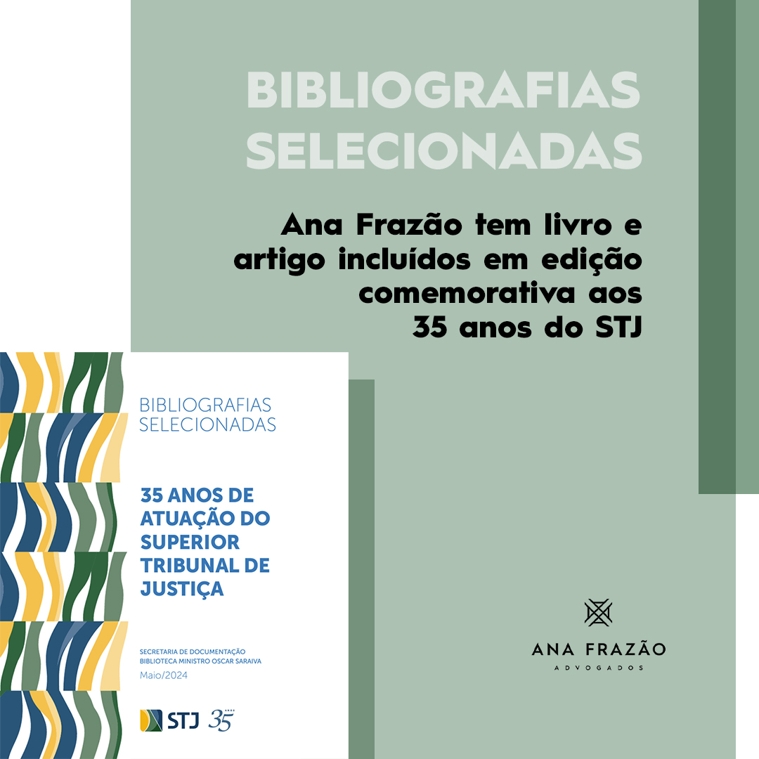 Nossa sócia Ana Frazão teve livro e artigo incluídos na nova edição das Bibliografias Selecionadas do Supremo Tribunal de Justiça (STJ) que celebra os 35 anos de atuação do órgão.