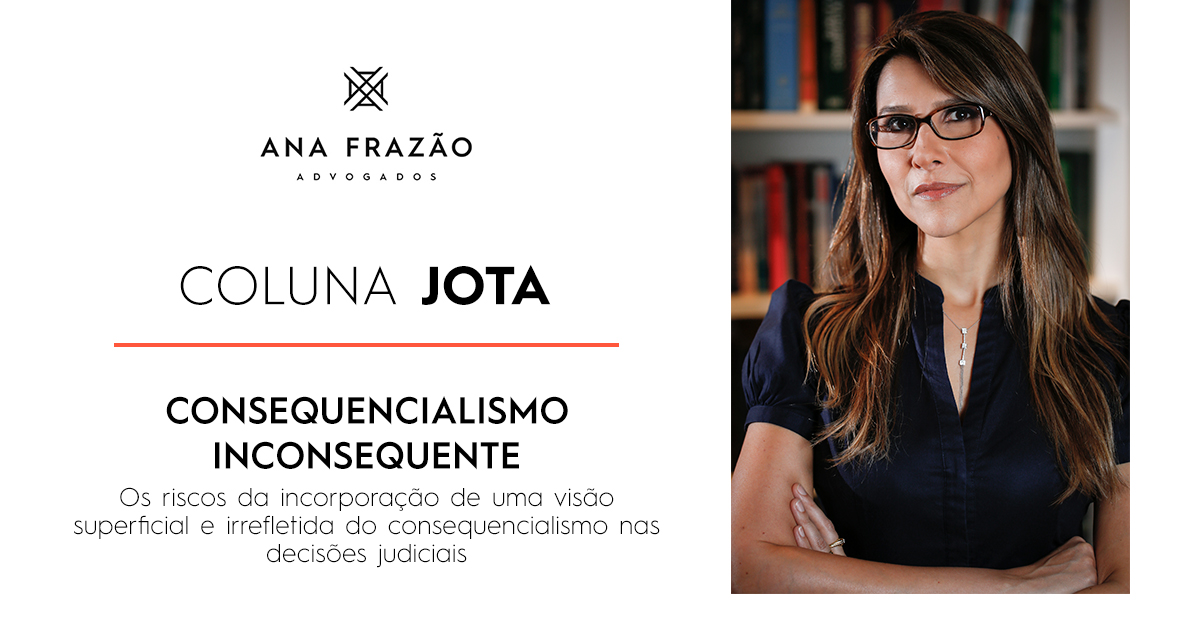 A coluna do JOTA desta semana traz o artigo de nossa sócia Ana Frazão chamado “Consequencialismo inconsequente – os riscos da incorporação de uma visão superficial e irrefletida do consequencialismo nas decisões judiciais”.
