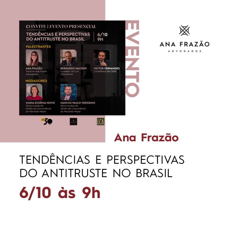 Nossa sócia Ana Frazão participará do evento “Tendências e perspectivas do antitruste no Brasil”, realizado pelo escritório Machado Meyer e que acontecerá amanhã, dia 6 de outubro, às 9h.
