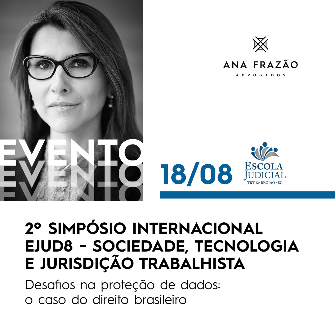 No próximo dia 18/08, às 10h, nossa sócia Ana Frazão participará do 2º Simpósio Internacional EJUD8 – Sociedade, Tecnologia e Jurisdição Trabalhista.
