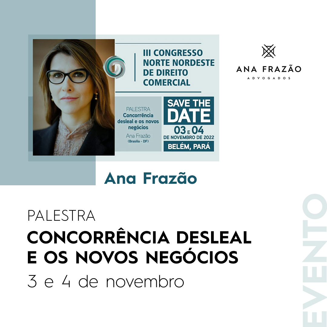 Acontece nos próximos dias 3 e 4 de novembro, o III Congresso Norte e Nordeste de Direito Comercial, do qual nossa sócia Ana Frazão será palestrante.