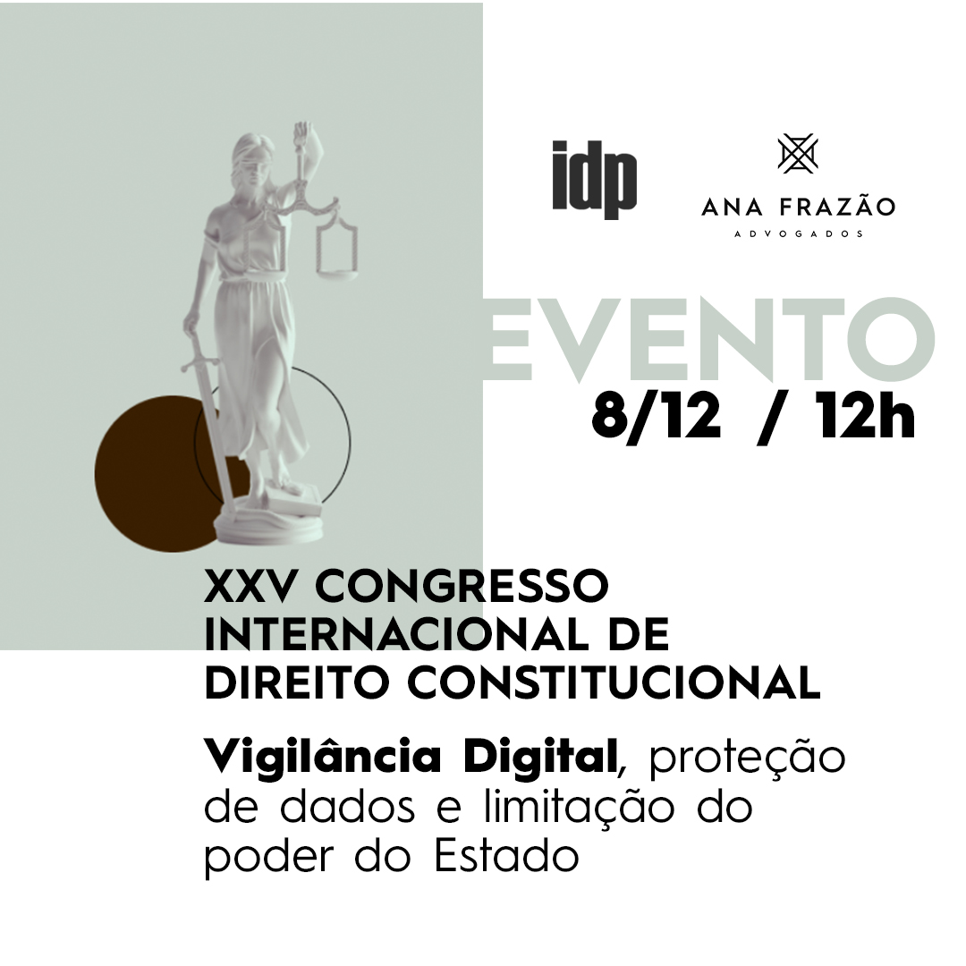 No próximo dia 8/12, às 12h, nossa sócia Ana Frazão será palestrante no “XXV Congresso Internacional de Direito Constitucional”, realizado pelo Instituto Brasileiro de Ensino, Desenvolvimento e Pesquisa (IDP).