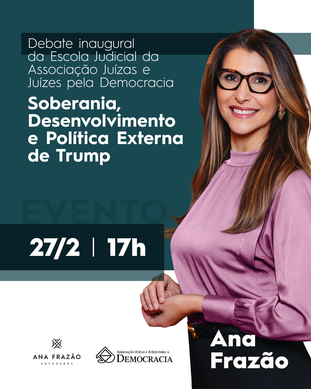 No dia 27 de fevereiro, nossa sócia Ana Frazão participa do debate inaugural da Escola Judicial da Associação Juízas e Juízes para a Democracia (EAJD), com o tema “Soberania, Desenvolvimento e Política Externa de Trump.