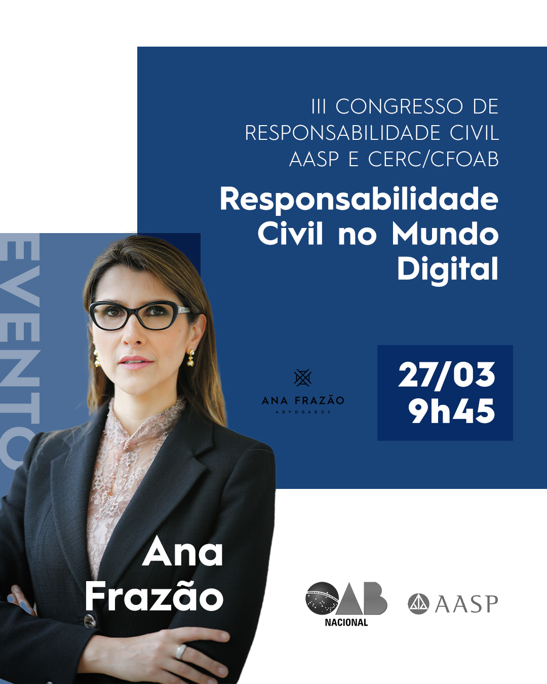 No próximo dia 25/3, às 18h30, nossa sócia Ana Frazão participa do webinar “Inteligência Artificial: Problemas Éticos e Jurídicos”, promovido pela Faculdade de Direito da Universidade Federal do Rio Grande do Sul (UFRGS).