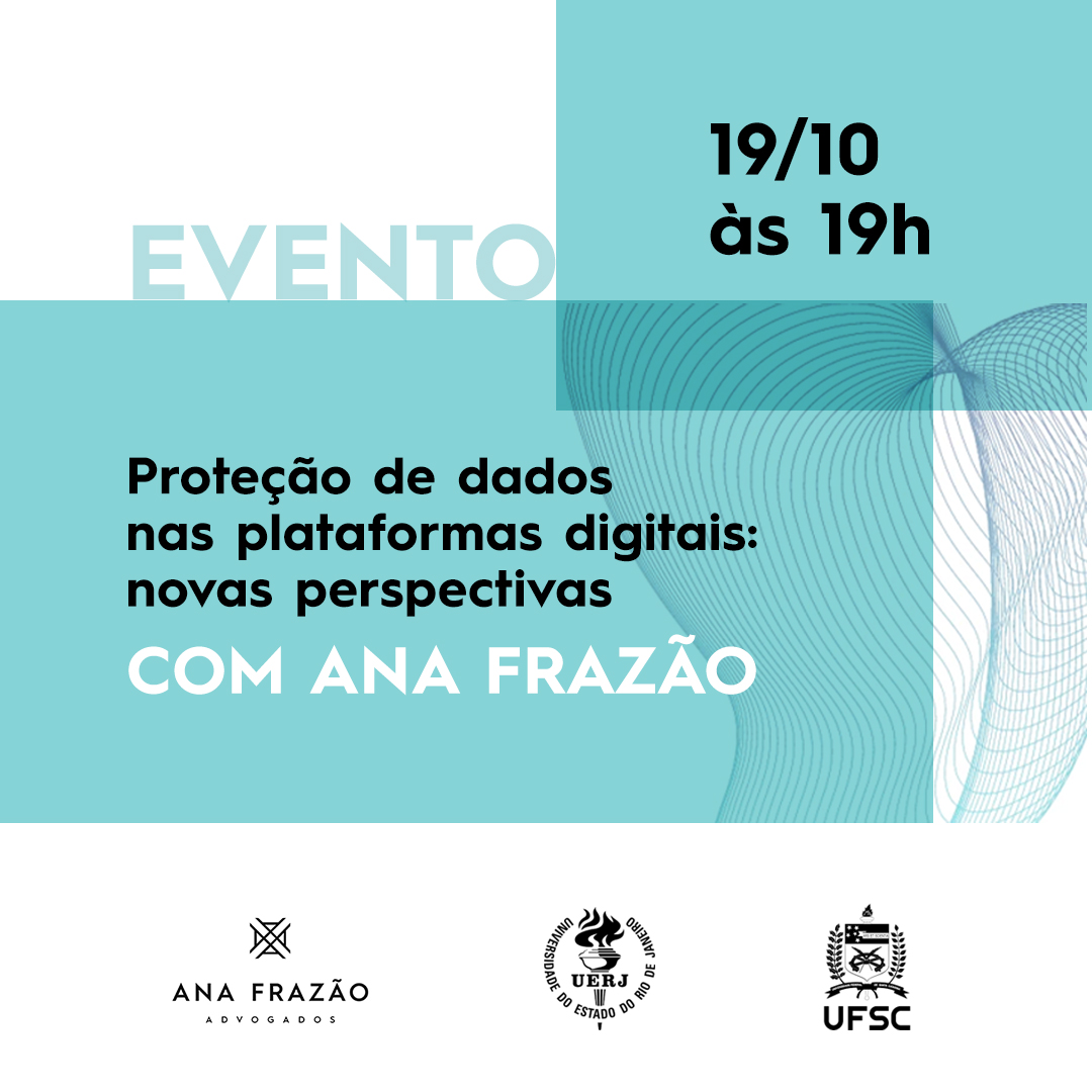 Hoje, às 19h, nossa sócia Ana Frazão participa do evento “Direito Digital, Mercado & Novas Tecnologias”,organizado pela Universidade Federal de Santa Catarina (UFSC) e pela Universidade do Estado do Rio de Janeiro (UERJ).