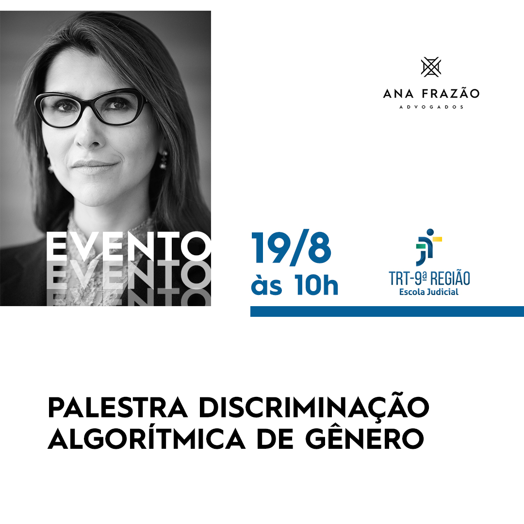 No próximo dia 15/9, às 14h15, nossa sócia Ana Frazão participará do XVII Encontro Institucional da Magistratura do Trabalho do Rio Grande do Sul, realizado pela Escola Judicial (EJud) do Tribunal Regional do Trabalho (TRT) da 4ª região.