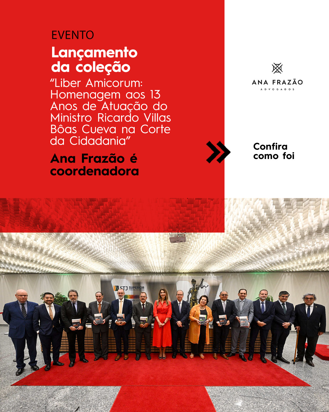 Nossa sócia Ana Frazão participou do lançamento da coleção “Liber Amicorum: Homenagem aos 13 Anos de Atuação do Ministro Ricardo Villas Bôas Cueva na Corte da Cidadania”, da qual é coordenadora.