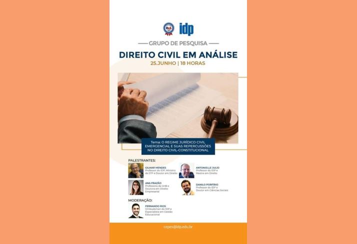 O evento é gratuito e será transmitido ao vivo pelo canal do IDP no YouTube: https://lnkd.in/eFwJbNG.