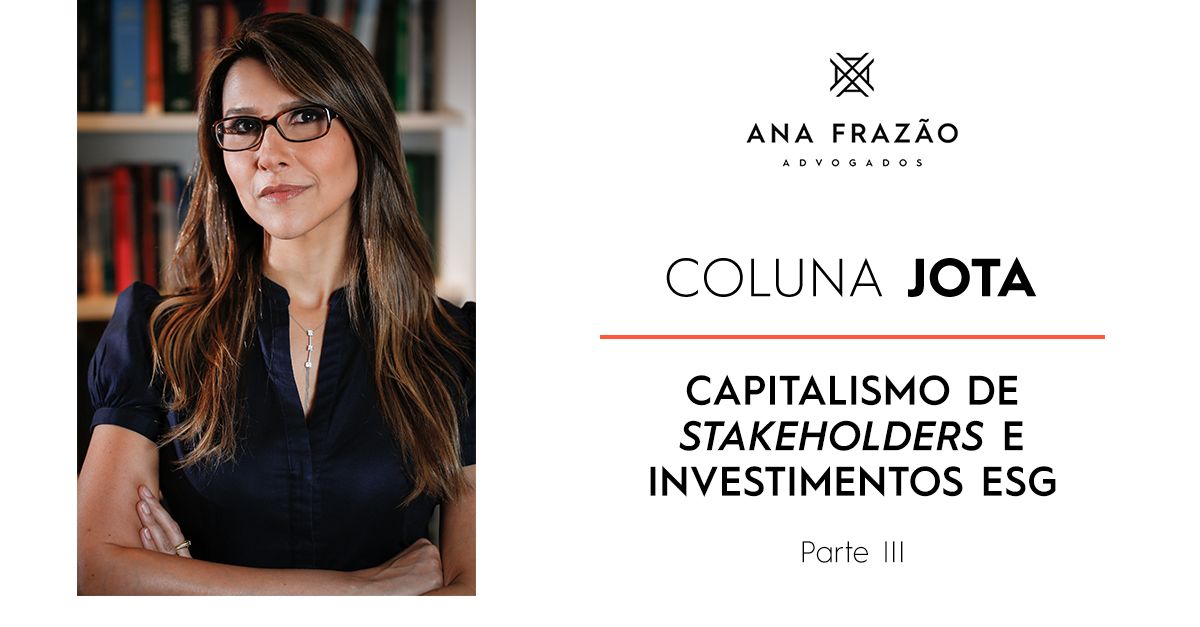 Nossa sócia Ana Frazão apresenta a terceira parte de seu ensaio “Capitalismo de stakeholders e investimentos ESG”, publicado dia 12/05, em sua coluna no JOTA.