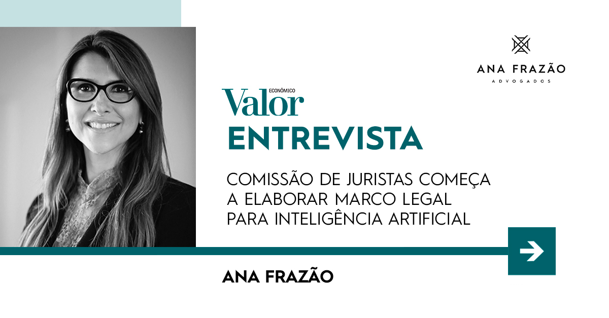 Em entrevista para o jornal Valor Econômico, nossa sócia Ana Frazão falou sobre a importância da criação da comissão de juristas, da qual ela faz parte, responsável por elaborar marcolegal para inteligência artificial (IA) no Brasil.