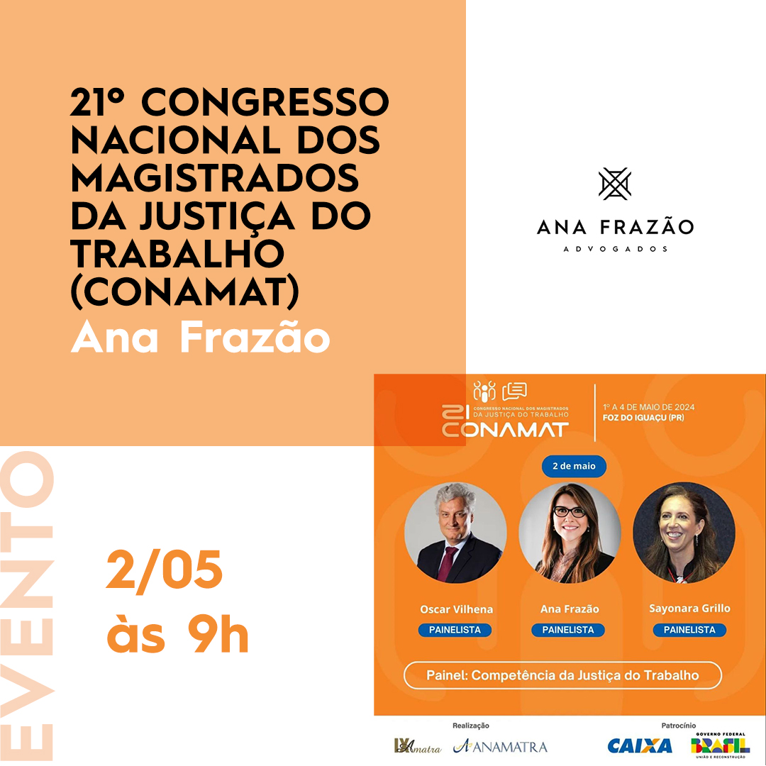 No último dia 20 de agosto, nossa sócia Ana Frazão participou do 2º Congresso de Pesquisa Judiciária, Estatística e Ciência de Dados da Justiça do Trabalho, promovido pela Secretaria de Pesquisa Judiciária e Ciência de Dados do TST, em parceria com a Escola Nacional de Formação e Aperfeiçoamento de Magistrados do Trabalho (Enamat) e com o Conselho Superior da Justiça do Trabalho (CSJT).