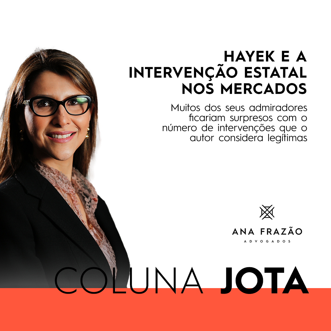 “Hayek e a intervenção estatal nos mercados” é o título do novo artigo de nossa sócia Ana Frazão publicado hoje, em sua coluna no JOTA.