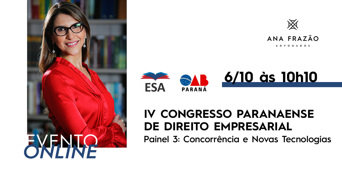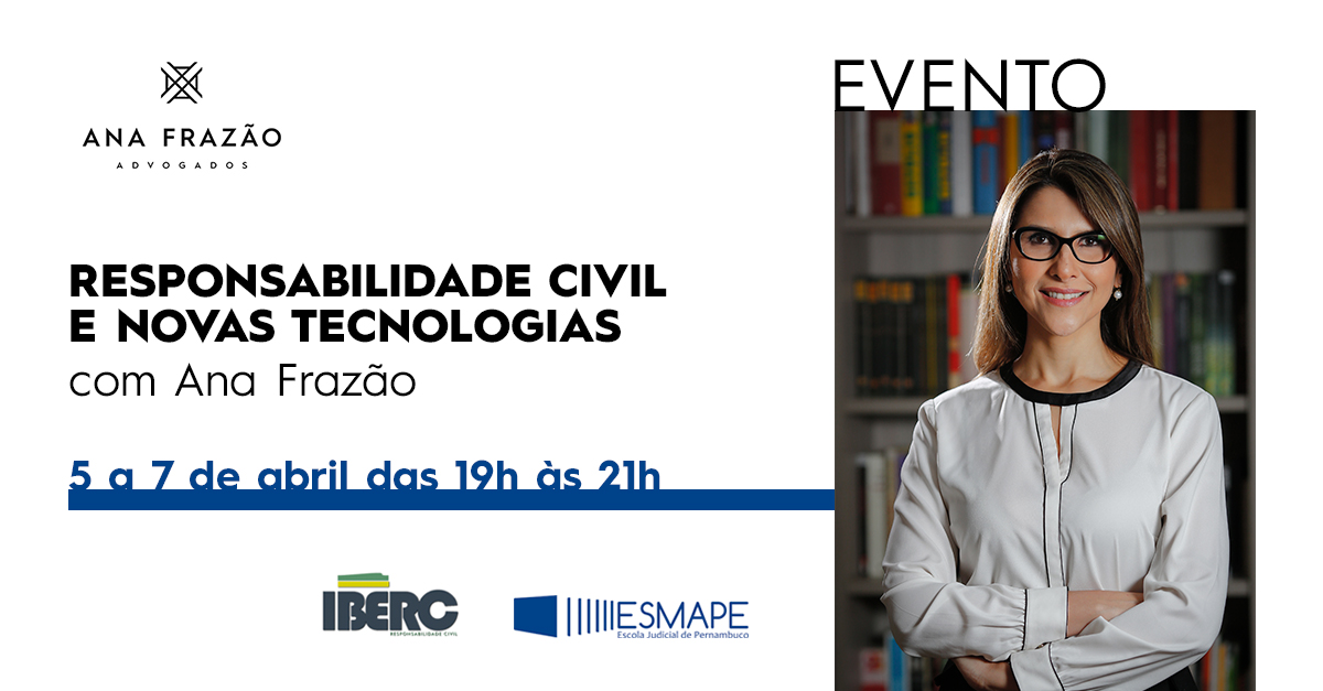 No próximo dia 13 de setembro, nossa sócia Ana Frazão participa do Seminário Responsabilidade Civil em Perspectiva: Desafios das Novas Tecnologias, promovido pelo Centro de Estudos Jurídicos da PGE-RJ, Instituto Brasileiro de Estudos de Responsabilidade Civil (IBERC) e o Instituto Brasileiro de Ensino, Desenvolvimento e Pesquisa (Idp).