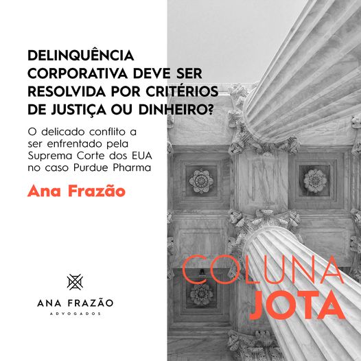 No novo artigo da nossa sócia Ana Frazão, em sua coluna no JOTA, ela fala sobre o delicado conflito a ser enfrentado pela Suprema Corte dos Estados Unidos no caso da Purdue Pharma.
