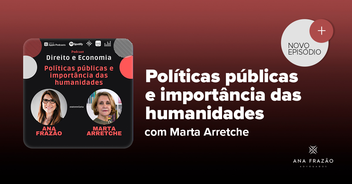 Nossa sócia Ana Frazão conversou com a professora Marta Arretche, em novo episódio do podcast Direito e Economia, sobre a importância e o papel das ciências sociais no contexto atual, em que a legitimidade das humanidades e da própria ciência é colocada em xeque.