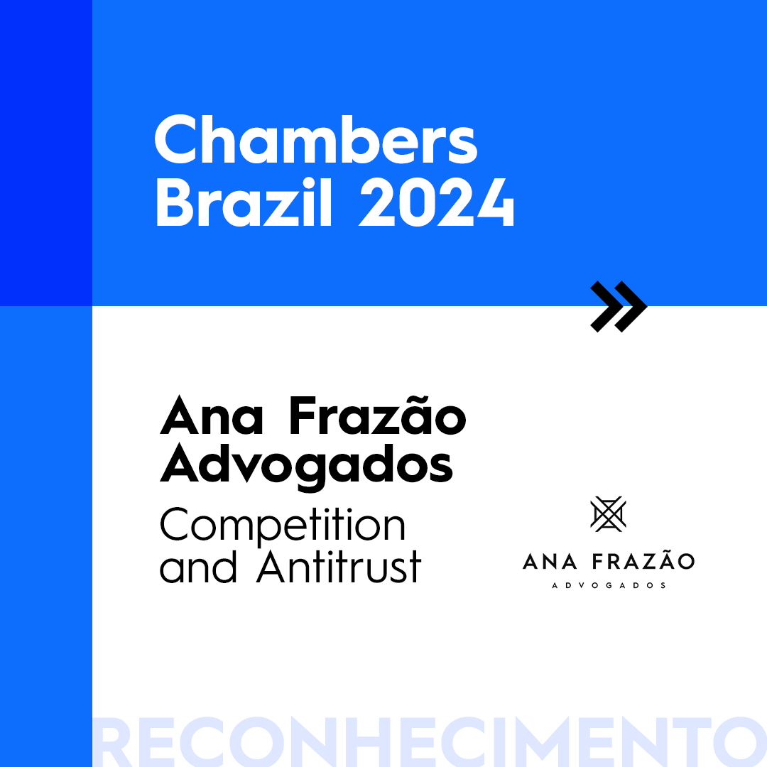 Já a renomada publicação britânica Chambers and Partners destacou nossa sócia Ana Frazão em seu novo guia Brazil Contentious 2023, entre os principais profissionais do Brasil na área de Concorrencial e Antitruste. Ana também foi incluída entre as advogadas mais admiradas do Brasil na área de Direito Concorrencial pelo anuário Análise Advocacia Mulher. A atuação do nosso sócio Angelo Prata de Carvalho foi mencionada por diversas publicações, incluindo-o entre os profissionais de destaque do país.