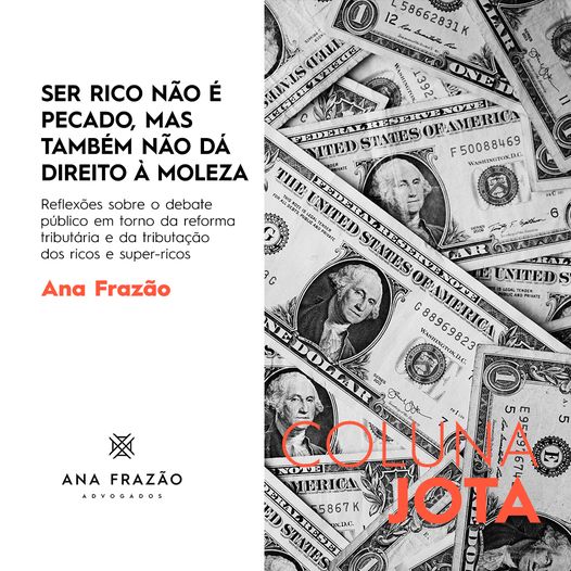 Nossa sócia Ana Frazão publicou artigo intitulado “Ser rico não é pecado, mas também não dá direito à moleza” em sua coluna no JOTA, desta semana.
